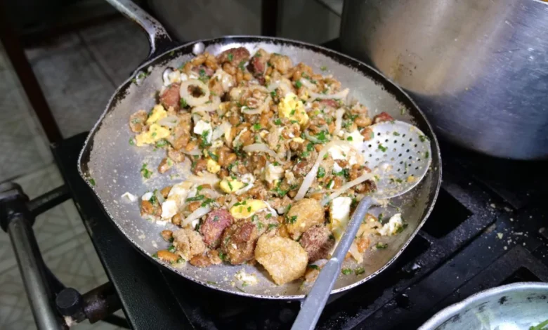 The foundational elements involve frying onions and beans together, creating a flavorful base. Simultaneously, a separate pan sizzles with onions and garlic in olive oil, destined to be added later, reinforcing the dish’s aromatic depth. The inclusion of large, thick pork cracklings, which are essentially double deep-fried pork chops broken apart, is a stroke of culinary genius, adding an unparalleled richness and crunch.